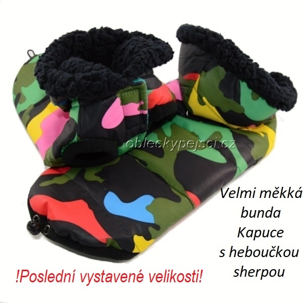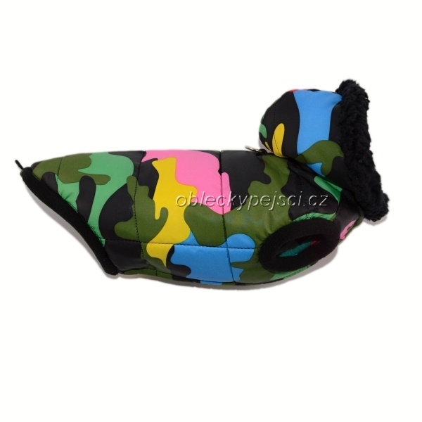 Velmi měkká, barevná zimní bunda pro pejsky i fenečky s kapucí, která je podšitá heboučkou, černou sherpou - beránkem