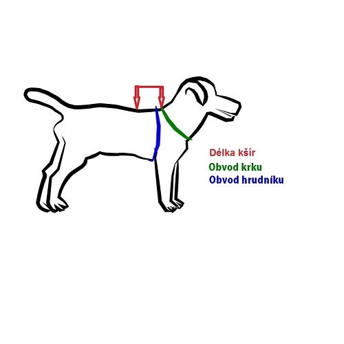 Kšíry se jednoduše oblékají, nejdříve provlečete přední nohu pejska a poté jednoduše zapnete pod krkem a hrudi pomocí suchých zipů. Délka kšír by měla být vašemu pejskovi do méně než poloviny zad.