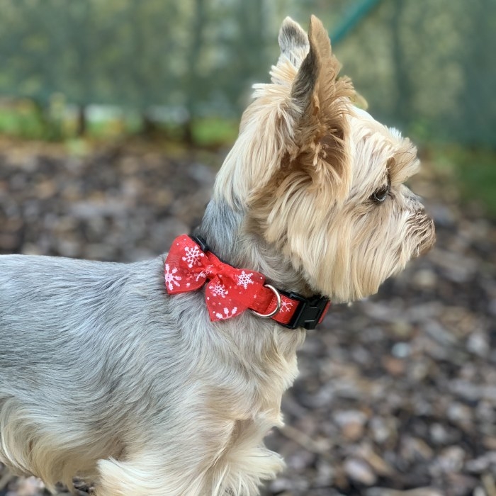 Vánoční, saténový obojek s malou mašličkou pro pejsky i fenky do svátečních dnů.
