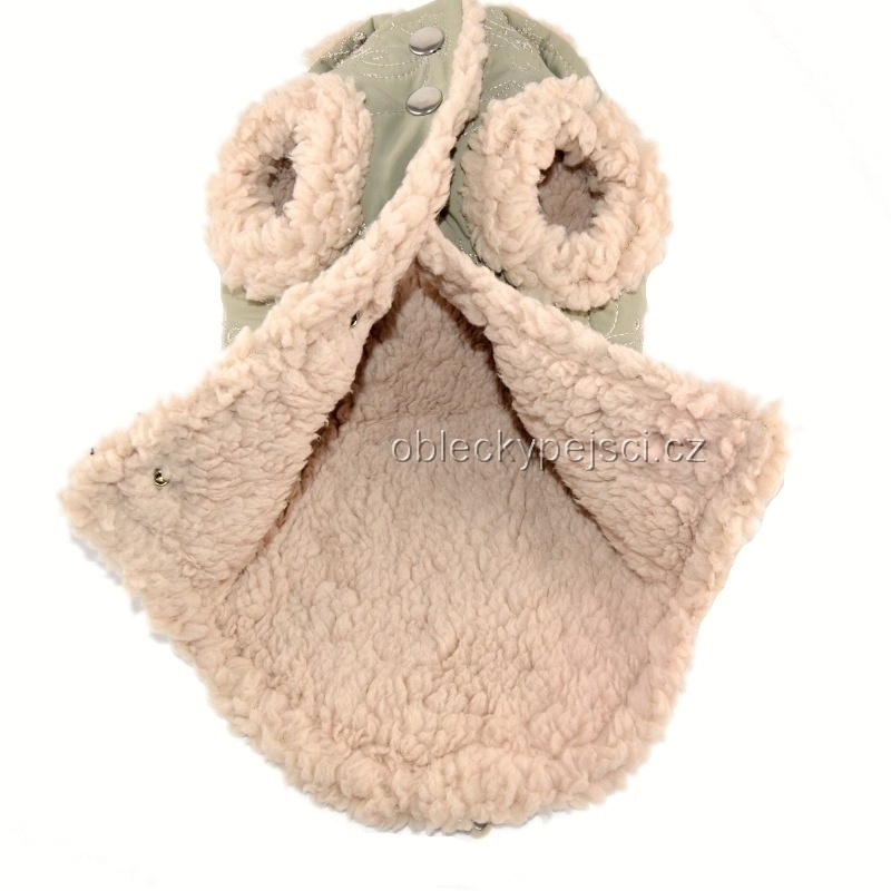 Zimní bunda pro malé psí holky béžovo - hnědá s beránkem zapínání na druky