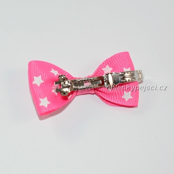 Přívěsky pro pejsky Mašlička se sponou Růžová - bílé hvězdičky