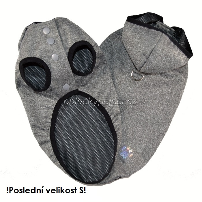 - není vypodšívkovaná, pod kapucí je všitý polokroužek pro připnutí vodítka, pokud Váš pejsek příliš táhne použite obojek patentky by se mohly rozepnout.