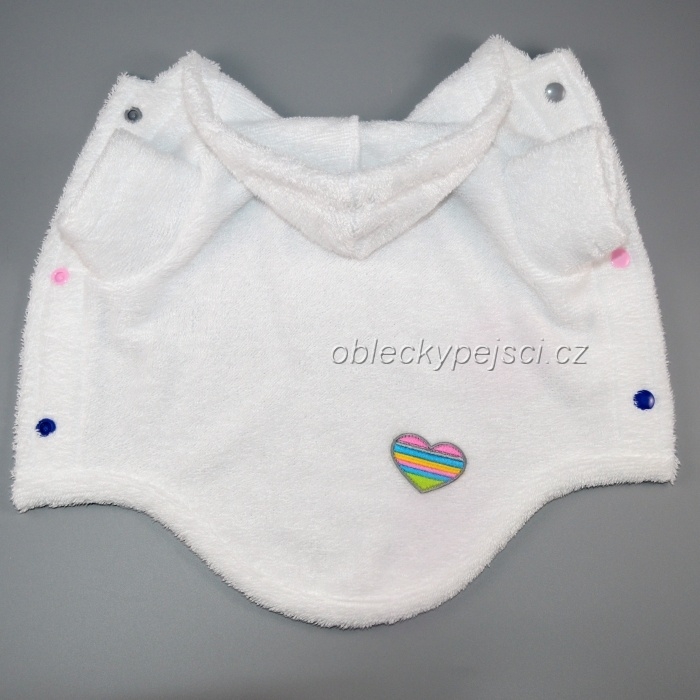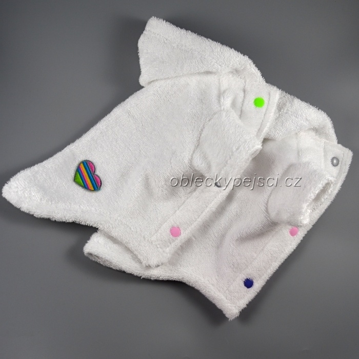 Župan pro své pejsky využijete nejen po koupání, ale i pro zahřátí v chladných dnech, zapíná se na bříšku pomocí barevných druků.
