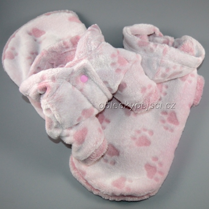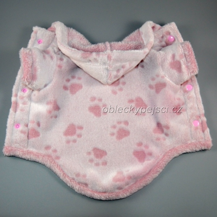 Župan pro své pejsky využijete nejen po koupání, ale i pro zahřátí v chladných dnech, či po deštivé procházce, župan se zapíná se na bříšku pomocí růžových druků.