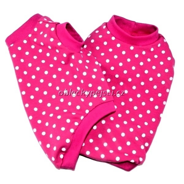 Sytě růžové tričko s bílými puntíky pro malé psí holky