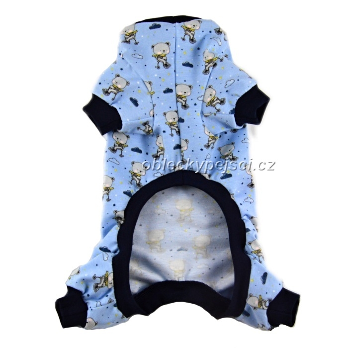 Modrý pyžamový overal bez zapínání pro malé psí kluky pro sladké sny :-)