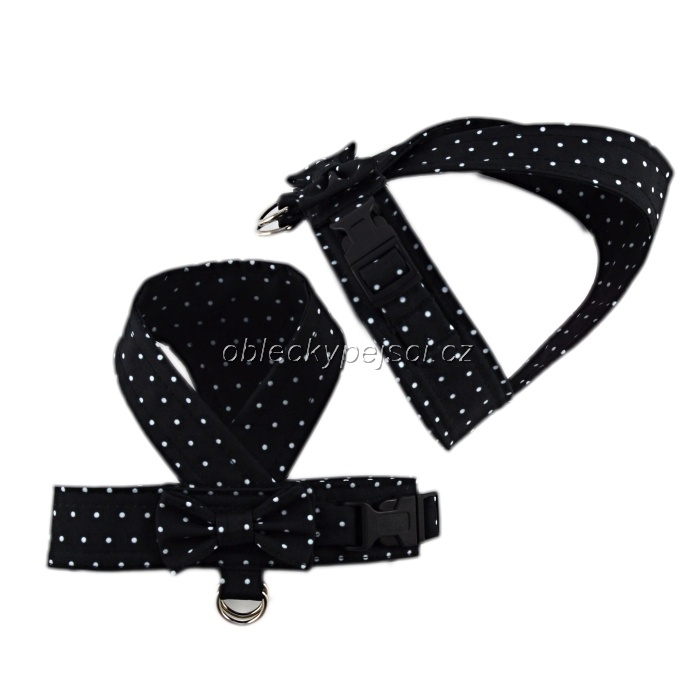 Letní softshellové kšíry černé s bílými puntíčky a mašličkou