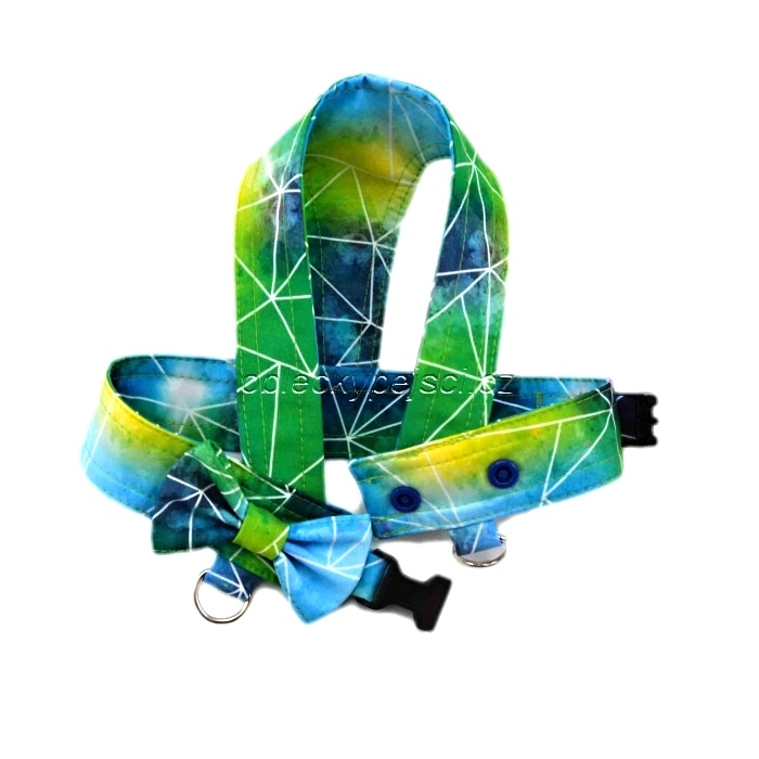 - ušité jsou z barevného, letního softshellu s digitálním tiskem, kšíry se jednoduše oblékají a zapínají se na zádech pomocí druků a trojzubce.
