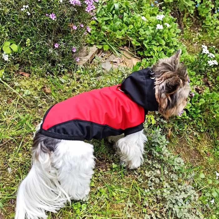 - pod kapucí je přišitý polokroužek pro připnutí vodítka, také patentka, aby kapuce držela na svém místě