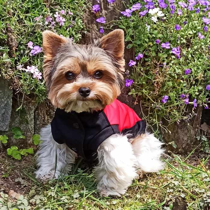 - ušitá je z velmi jemného, elastického, letního softshellu v krásně výrazné červené a černé barvě