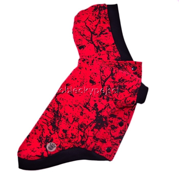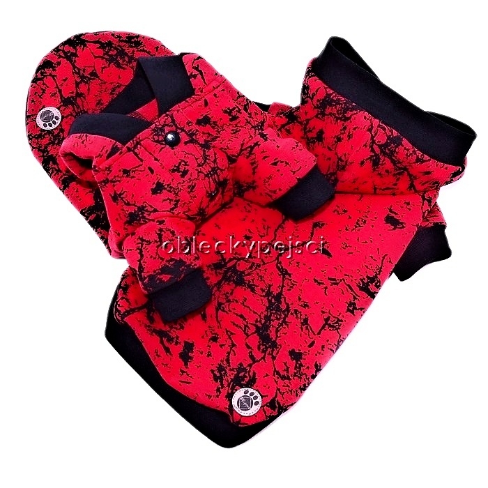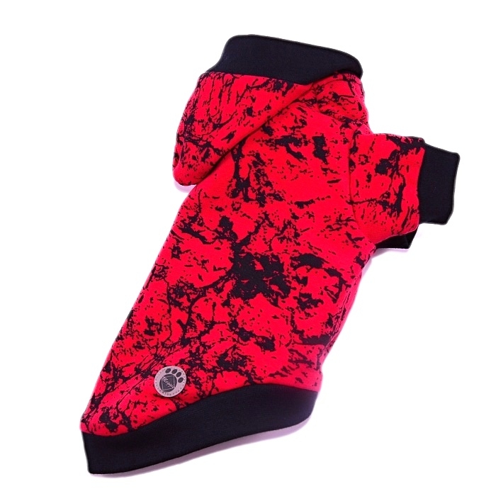 Výrazně červená, tepláková mikina pro psí holky s černým mramorovým motivem do jarních až podzimních dnů.