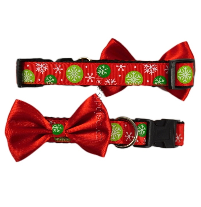 Vánoční obojek s vločkami a saténovou mašličkou