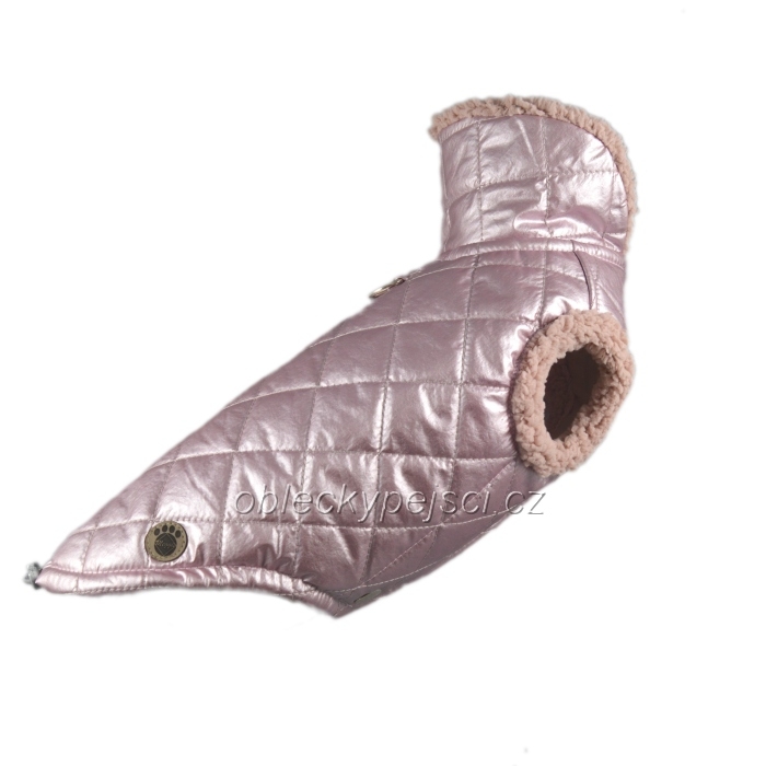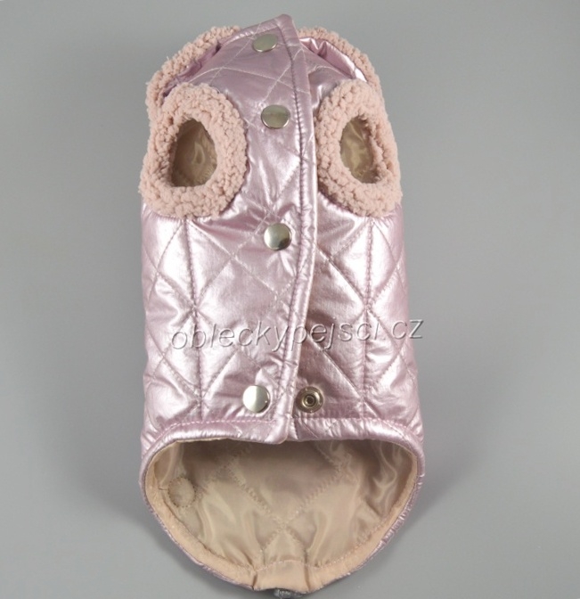 Luxusní, zimní bunda pro malé psí holky pudrově růžová s kovovým leskem